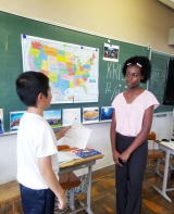 | 1学期までお世話になっていたローラ先生にかわって、クリッシー先生に来ていただくことになり、5年生での外国語ので一人ひとり握手をして自己紹介をしました。笑顔で話しかける子、身振り手振りいっぱいに伝えようとする子、あまりの緊張にドキドキがとまらない子などなど、それぞれの思いを胸にクリッシー先生と出逢いました。 クリッシー先生よろしくお願いします。 ![]() |