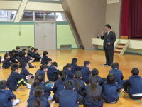 児童会保健委員会からは、この時期流行しているインフルエンザや風邪対策、予防法として、「栄養をしっかりとる」「こまめに水分をとる」「手洗い・うがいをする」「マスクをきちんとつける」など委員一人ひとりが考えた具体的な対策・予防項目を紙に記して発表し、寒さを乗り切り、健康な生活を送ろうと皆に呼びかけました。