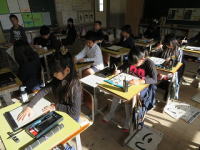 暖かい日差しが差し込む中、静まりかえった教室には、黙々と問題文に集中して取り組む子どもたちの姿と、しっかり考え答えを書き込む鉛筆音が響いていました。