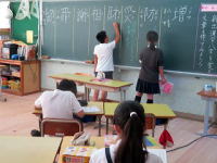 5年生は国語の時間、今日のめあては「新出漢字を覚えて、文章を作ってみよう」。授業では、まず本時の新出漢字、「増」「防」「災」「留」など全部で八文字の新出漢字の書き取りを漢字ノートに丁寧に書き込み、しっかり漢字を覚えることから始まりました。その後覚えた漢字を使って、「人口の増加」や「火事の現場に消防車が来る」「火災保険に入る」「外国に留学する」など、一人ひとりが新出漢字を含む文章を作って黒板に書き、みんなで確かめ合いました。