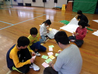 午後から小中に分かれて、文化祭用のポスター、看板作りを行いました。小学生は、外掲示用の立て看板と地域への呼びかけ看板を、中学生は体育館に掲示する横看板と出し物看板作りに精を出していました。看板の装飾も花飾りや自分たちで考えたメッセージなど貼り付け、とてもカラフルなものに仕上げていました。