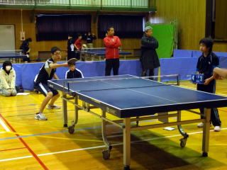 ダブルスの部では、一般チームとの対戦もありました。さすがにフォアやバックハンドの回転力の鋭さや強さ、フットワークの良さには実力差を感じましたが、消極的にならず強気で攻める姿勢には今後の期待と共に成長の跡が伺えました。