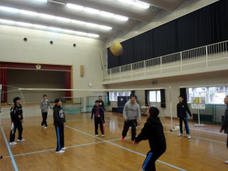中学校は体育の時間、ミニソフトバレーの練習と試合を行っていました。これまで練習してきた成果が表れ、オーバーパスやレシーブが以前より格段と上達していました。チーム内の連携プレーやかけ声にはまだまだ物足りなさを感じますが、ラリーが続くようになって皆、ソフトバレーの楽しさを実感しながらゲームに熱中していました。