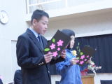 3月3日、神上中学校の子どもたちは、町内の神上地区に在住する60歳以上の一人暮らしをしている家庭を訪問し、花の鉢にメーセージを添えた花配りを行いました。