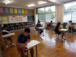 「スマホを持ち始めたばかりの生徒が、ライン等をやり始め、知らない人と知り合う機会が多いこと」「何気なく投稿した写真がきっかけになって、犯罪に巻き込まれることがあること」「ネット上での会話だと、表情もわからず、意味を取り違えてトラブルになるケースが多いこと」「相手のことを考え、自分がされて嫌なことはしない」等、経験に基づく生の声を聞かせていただきました。生徒はみんな真剣な表情で聞き入っていました。