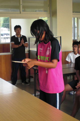 「あえいうえおあお・かけきくけこかこ・・・・・」今日の午後、生徒たちの元気な声が校長室まで聞こえてきました。 延期されたので運動会もまだ済んでいませんが、学校では11月の文化祭に向けて劇の練習も行っています。聞こえてきたのは本格的な劇の台詞練習に入る前の発声練習の声でした。 昨年は50分にもおよぶ反戦劇を見せてくれましたが、今年はどんな劇になるのか今から楽しみです。