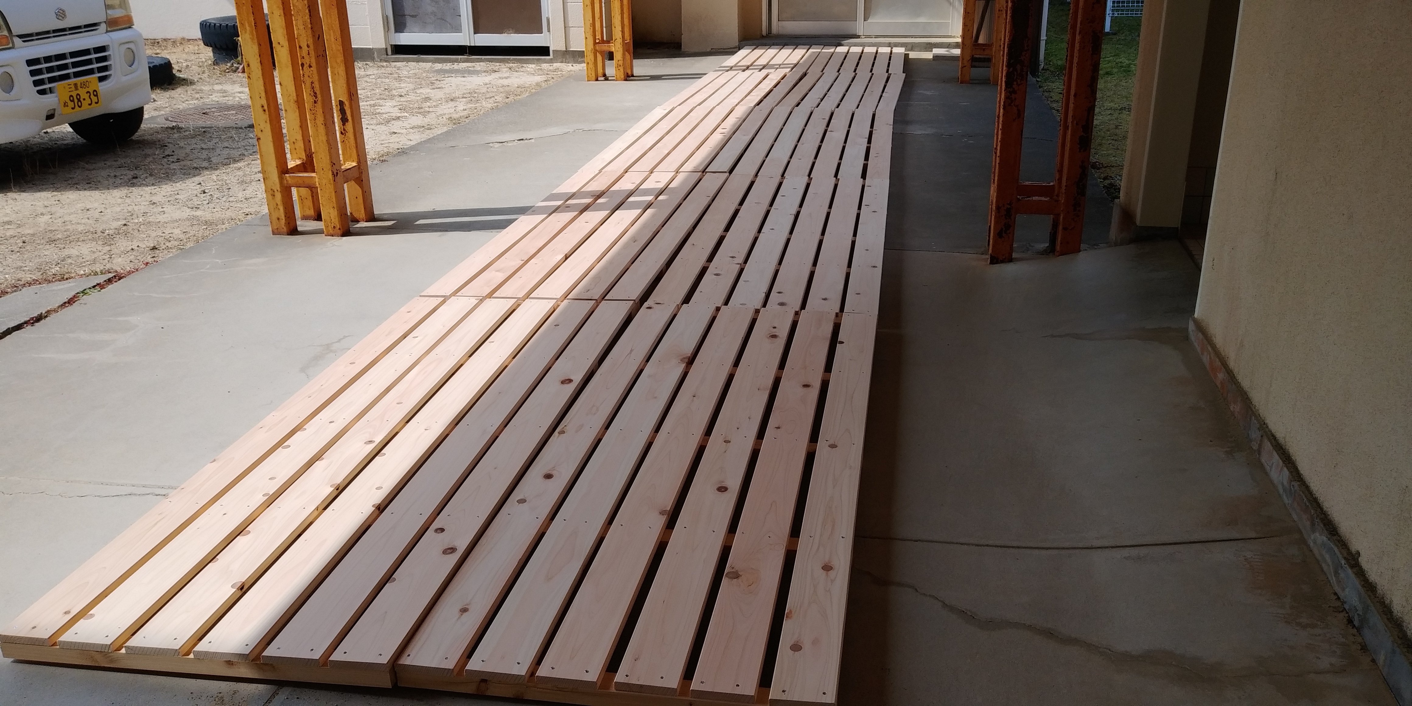 すのこ製作に取り組んでもらいました。立派なすのこができました。体育館の渡り廊下もピカピカになりました。